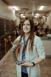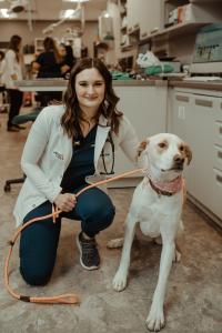 Victoria graduated with her Animal Health Technology diploma from NAIT in 2019, Vicky came to CVH for her practicum and has been here ever since! In her spare time, Vicky enjoys going for walks with her husband and dog Winnie, hanging out with her two cats, and rocking out to heavy metal music. She is a great team player- during the summer you can find her on the field playing slo-pitch with a few different teams in the community and in the fall she is busy playing volleyball! In the clinic, you'll usually find her in the lab looking at samples under the microscope - she is our go to encyclopedia for what types of cells we may be looking at! Although she loves every animal that comes through the clinic doors, her favorite patients are definitely boxers!